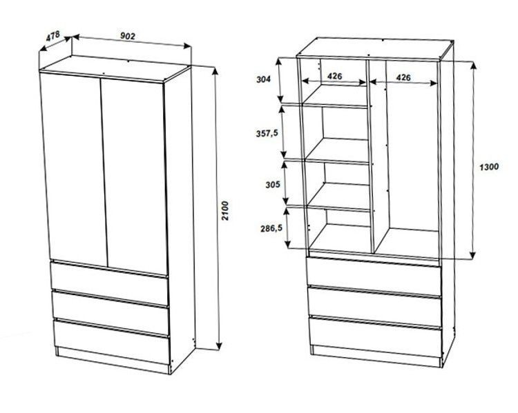 Размеры (Ш*В*Г)(мм): 902*2100*478