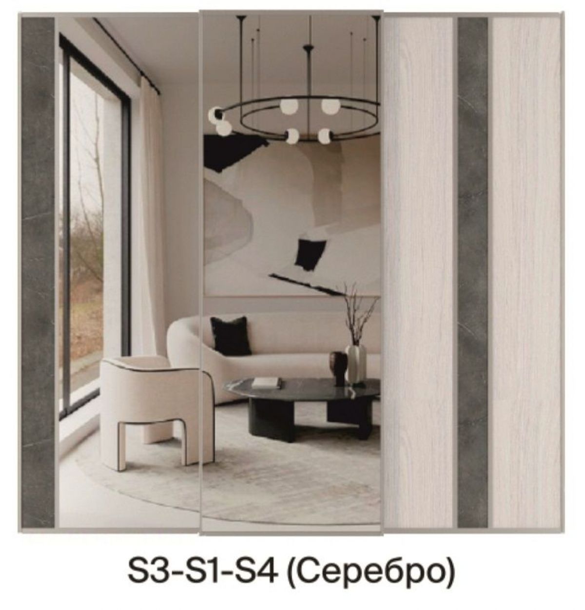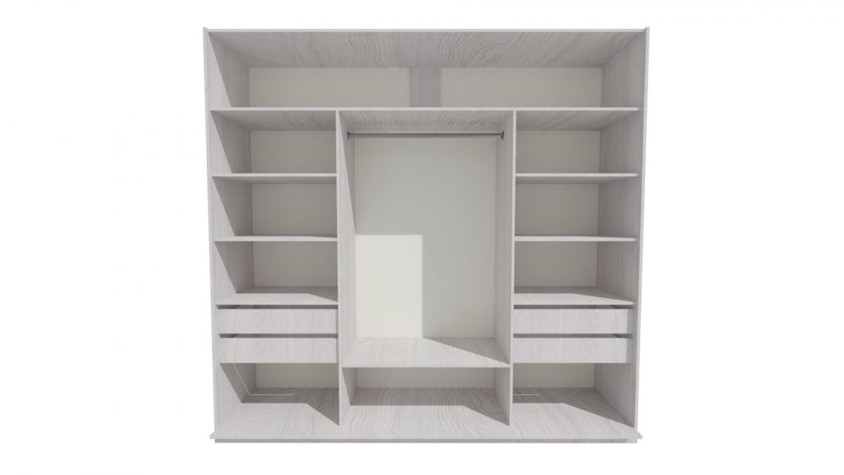 Шкаф-купе 2250 серии SILVER S3+S1+S3Z B22+PL2 (по 2 ящика лев/прав+1штанга+1 полка) профиль «Серебро»